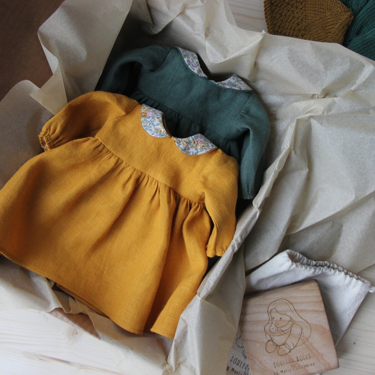 - шить сарафан и платье с длинным рукавом и круглым воротничком для вальдорфской куклы размером 38 см;